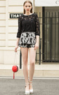 修身透视短款打底衫,隐隐约约露出身上的肌肤,性感诱人,搭配欧美风短裤,将女性的成熟魅力烘托而出