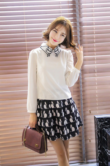 刺绣翻领上衣+印花A字半裙,休闲中不失优雅,是出门前不需要费心思纠结的美搭哟,搭配高跟鞋巨好看又小女人哟~
