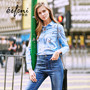 韩版长袖雪纺衬衫,版型修身显瘦,面料舒适透气性好,搭配蓝色牛仔裤,轻轻松松秀出好身材