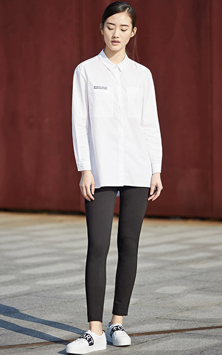 一件素白的衬衫,是一年四季必备的单品,宽松的版型加上黑色字母印花,简约又不失个性,搭配黑色铅笔裤,轻松出街