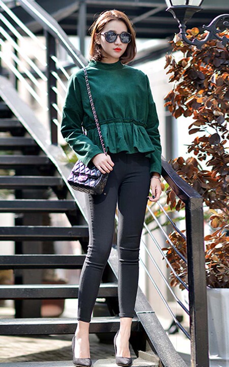 带着复古情怀的灯芯绒卫衣,百褶收腰的荷叶边,美小高腰的设计,显高显瘦,搭配修身打底裤,更是很显身材。