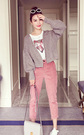 宽松的吊带+开衫两件套,棉麻的材质噢,上身很舒服呢,透气吸湿,橡皮粉很显肤白,搭配一字扣粗跟鞋,休闲又好看