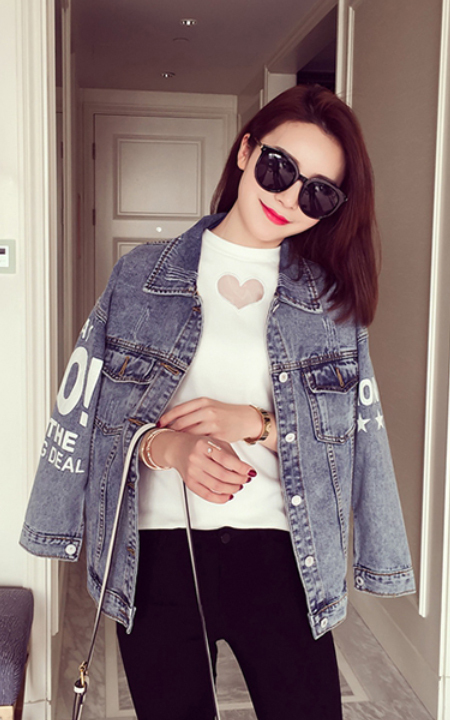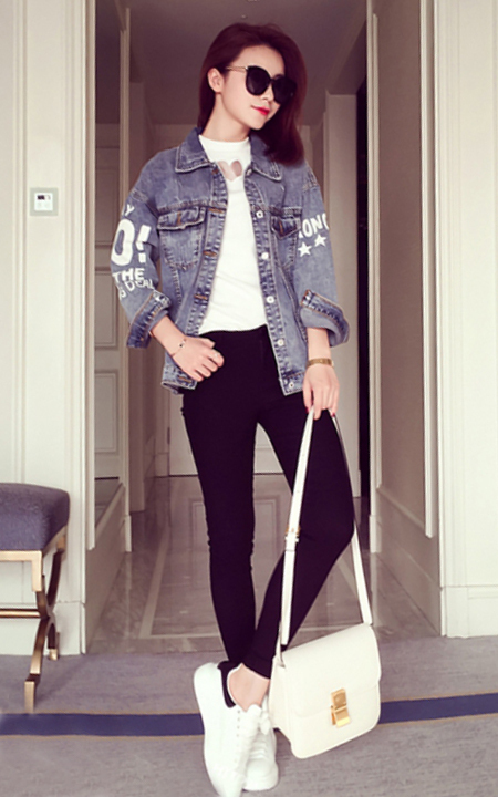 帅气有型的牛仔外套不仅受到男生们的喜爱,也成为女生们率性的装扮之一,搭配爱心镂空设计的修身打底衫和小铅裤很有个性