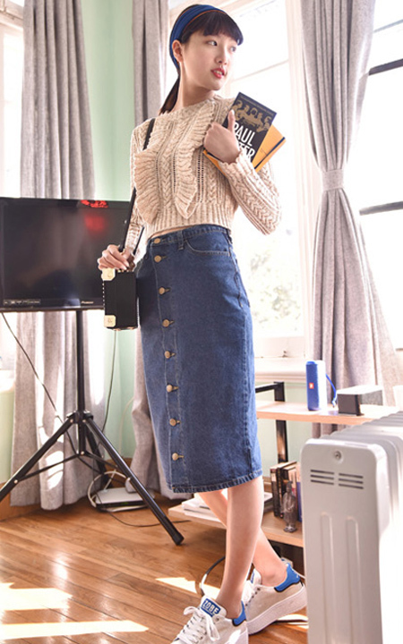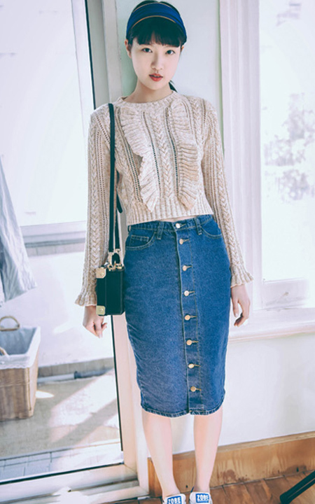 一款复古味很浓的毛衣,颜色素雅但是却有很丰富的视觉效果,质地温和柔软,配上牛仔半身裙,即可显得与众不同