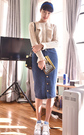 宽松的吊带+开衫两件套,棉麻的材质噢,上身很舒服呢,透气吸湿,橡皮粉很显肤白,搭配一字扣粗跟鞋,休闲又好看