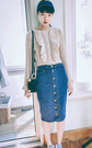 时尚大气的翻领衬衫,修身的剪裁,质感极佳,搭配优雅的半身裙,蕾丝拼接式的裙摆,散发迷人的魅力!