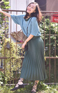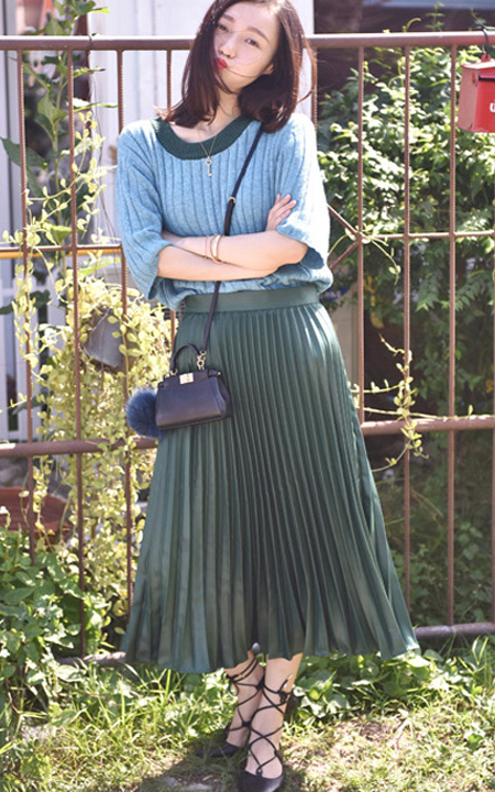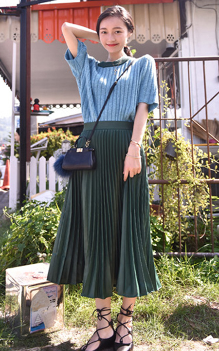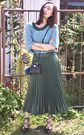 复古味十足的针织毛衣,圆领与大气的中袖结合,更符合了女性温婉优雅的气质,配上宽松的半身裙,显得成熟有范儿