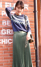 这款毛衣一见到就非常喜欢,经典的名族风几何图案,质感非常柔软,配上墨绿色的半身裙,文艺范十足