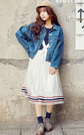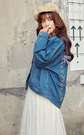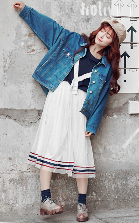 春季必不可少的牛仔外套,衣身后两排穿插系带结构,系成美美的蝴蝶结,搭配又潮又仙的少女系甜美半身裙,甜美很可爱。