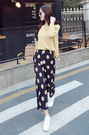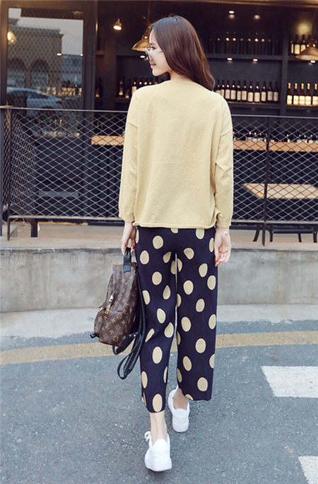 下摆开叉宽松版针织衫,搭配一条波点图案休闲裤,修饰身形,不挑身材,让你气质瞬间提升,展现出时尚的简约风格。