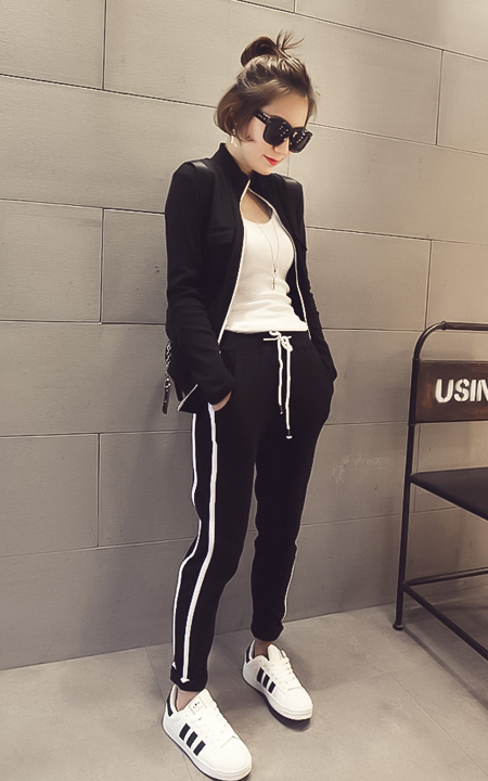 休闲时髦的套装,柔软舒适的质感,上身效果极佳,内搭白色小背心,气质凸显,多种场合都适合穿。