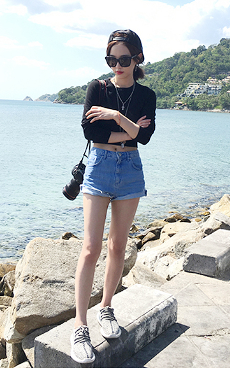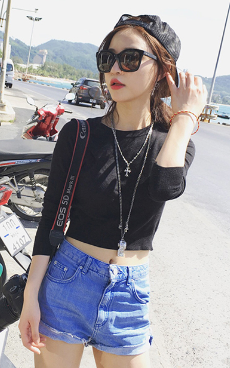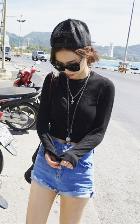 这款针织衫,弹力的针织面料,穿上身非常显瘦,而且自带魔力,搭配高街少女的那种感觉的小短裤很时尚