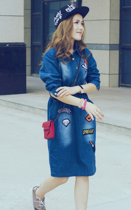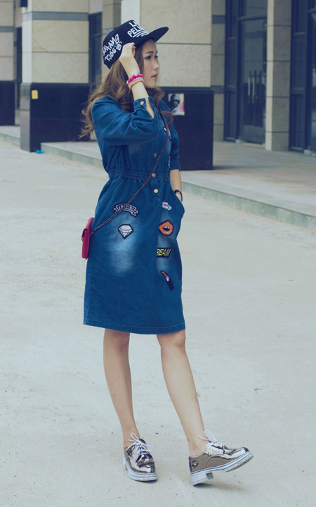 这款牛仔连衣裙足以搞定所有搭配,不用烦恼,配双小皮鞋,超有质感,戴上黑色手表,学生价的好表,棒球帽戴起,休闲又简约!