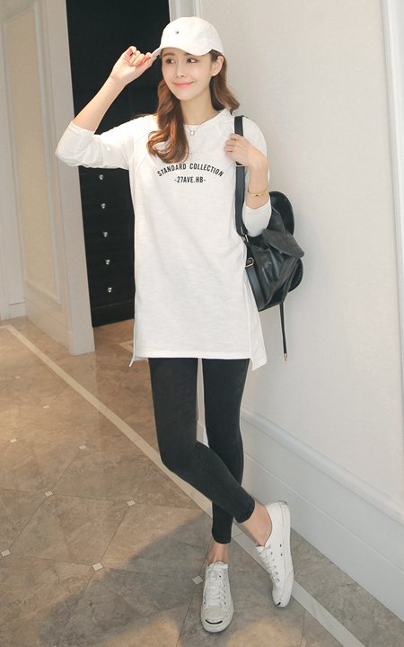 字母印花T恤圆领,经典乖巧!胸口字母印花,时尚休闲!搭配牛仔打底裤+百搭小白鞋+经典情侣手镯,很有范儿的说!