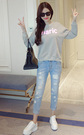 经典百搭的一款卫衣,胸口缝制亮片字母,领口和袖口下摆螺纹收口,更贴合腰身,搭配破洞牛仔裤,穿起来更显身材。