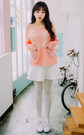 薄薄露单肩的春季针织毛衣,上面亮片都是手工绣的哦,搭配白色短裙,亮丽俏皮。