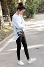宽松的吊带+开衫两件套,棉麻的材质噢,上身很舒服呢,透气吸湿,橡皮粉很显肤白,搭配一字扣粗跟鞋,休闲又好看