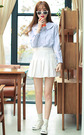 衬衫一直被明星和素人所宠爱,而这款则是经典触碰惊喜,甜美的彼得潘领渲染了浓郁的学院风,搭配百褶裙,不美才怪。