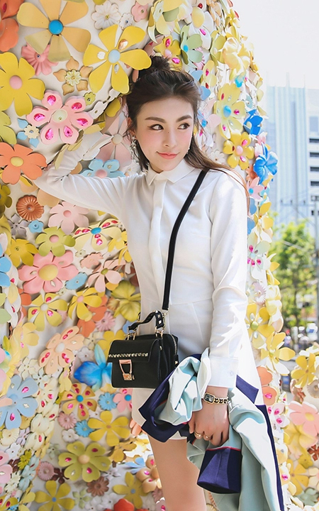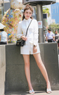 气质干练的白色连体裤,简约大方,很时尚很有范,一上身就感觉非常精神,,元气满满,搭配双凉拖鞋,摩登街头风。
