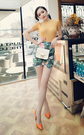 有点旗袍式的连衣裙,修身的剪裁,包臀展现女人优雅的身姿,裙摆网纱的设计,很有美感,搭配红色高跟鞋,韵味十足!