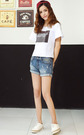 字母印花t恤,面料舒适亲肤,宽松的版型,不挑身材哦!搭配卷边破洞牛仔短裤,休闲不失时尚。