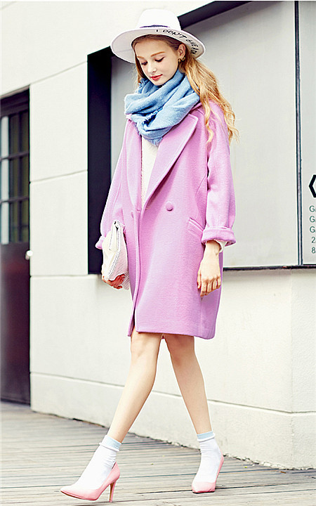 糯糯的樱花粉色毛呢大衣,内搭学院风几何肌理卫衣裙,甜美中透露着运动休闲风!