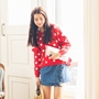 红色衣身配上白色波点,特别俏皮也很清纯,搭配波浪边牛仔半身短裙+休闲系带PU短靴,更加活力十足,可爱满满。