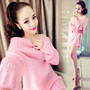 超级粉嫩的颜色,一字领毛衣设计有点小小性感~宽松的版型,有一种慵懒的感觉~连衣裙设计单穿就很好看~约会的时候美美哒~