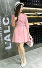 宽松的吊带+开衫两件套,棉麻的材质噢,上身很舒服呢,透气吸湿,橡皮粉很显肤白,搭配一字扣粗跟鞋,休闲又好看