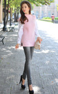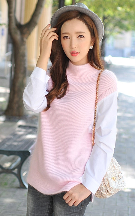 高领设计,别致拼接的毛衣,简约版型,青春减龄,搭配修身款的牛仔裤,小香风范链条包,很是甜美显瘦!