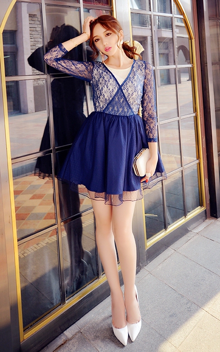 裙身富有设计感的拼接蕾丝,风情很好,透着点小个性,散发着女性有的温柔。搭配高跟鞋出街,就让人感觉是个小公主