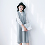 宽松的吊带+开衫两件套,棉麻的材质噢,上身很舒服呢,透气吸湿,橡皮粉很显肤白,搭配一字扣粗跟鞋,休闲又好看