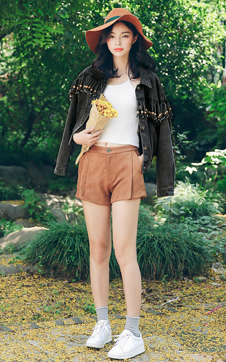 超有风格的一款牛仔外套,不能再爱的节奏。珠坠流苏设计,很有风格又经典耐看,内搭背心和短裤,个性时尚,轻松出街。