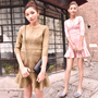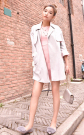个性的廓形麂皮拼色风衣,腰带可以很帅气地系起来。搭配复古荷叶边连衣裙和兔毛装饰单鞋,街头优雅欧美风。