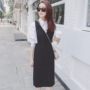 个性的蝙蝠袖,宽松纯色BF风衬衫,搭配V领中长款连衣裙,经典黑白搭配,简单大方有气质。