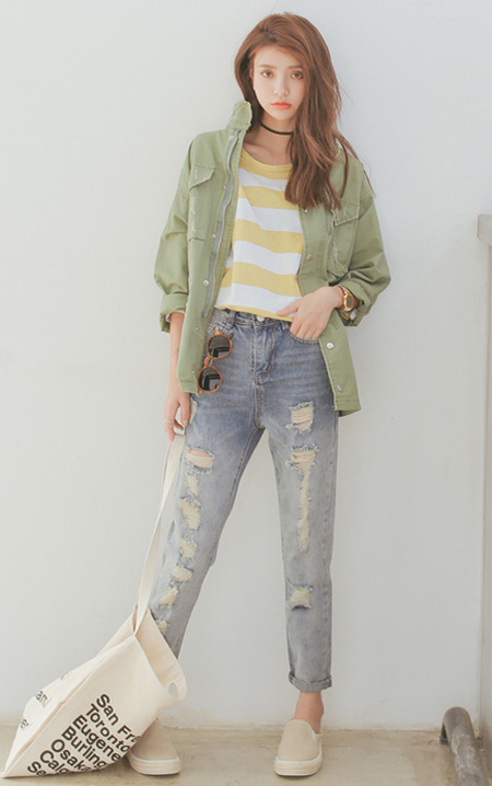 休闲帅气bf风磨破印花外套,经典的翻领设计,简单不简约,时尚口袋,独特别致,内搭T恤和破洞牛仔裤,时尚个性,秋天照样耀眼