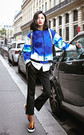 蓝色晕染插肩廓型短外套,内搭设计感白衬衫和侧流苏弹力高腰九分裤,实在是帅气十足!
